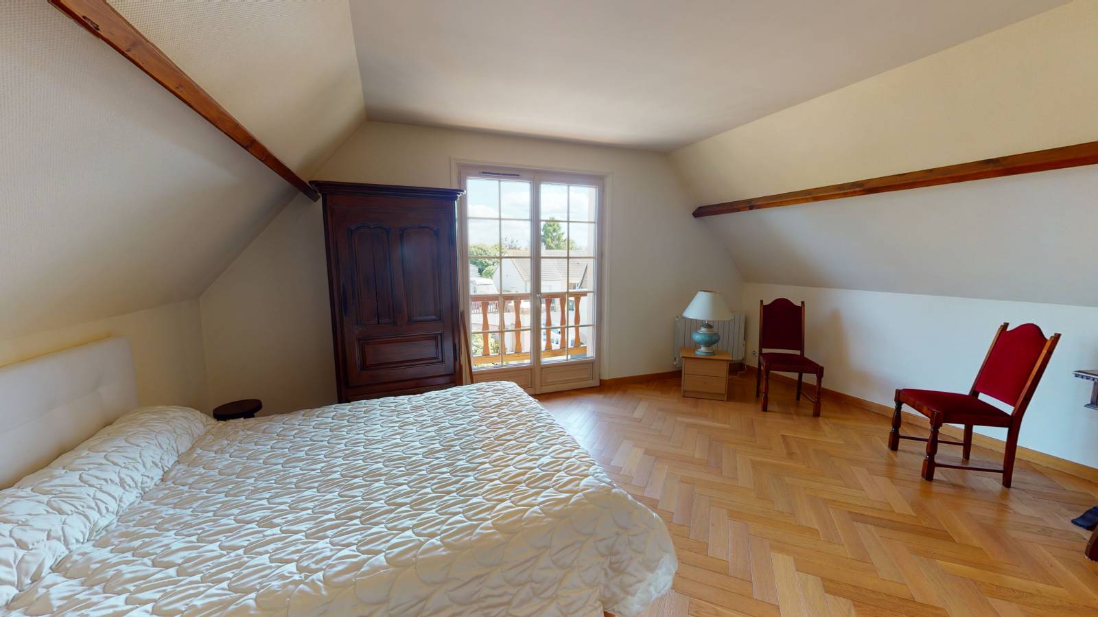 - A l'étage : Un palier desservant une chambre avec salle de bains, un WC, trois chambres en enfilades, un placard et une chambre avec salle d'eau et balcon.