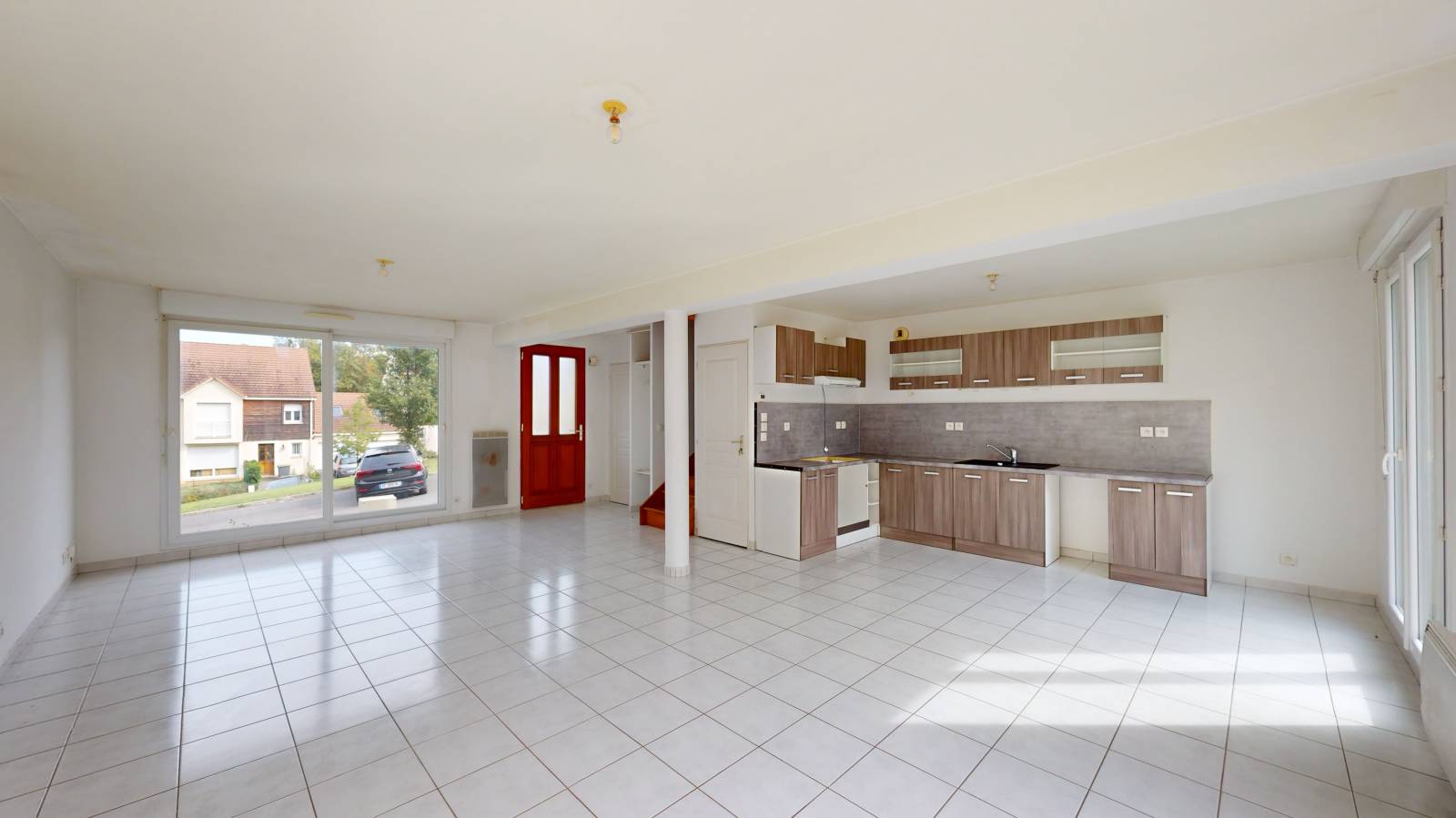 À vendre, à EVREUX (27000), maison mitoyenne et moderne de 5 pièces au calme de 95m² comprenant : Au rez-de-chaussée : Un salon/séjour, une cuisine ouverte aménagée et un WC indépendant. Au premier étage, un palier décernant trois chambres et une salle de bains et un WC.