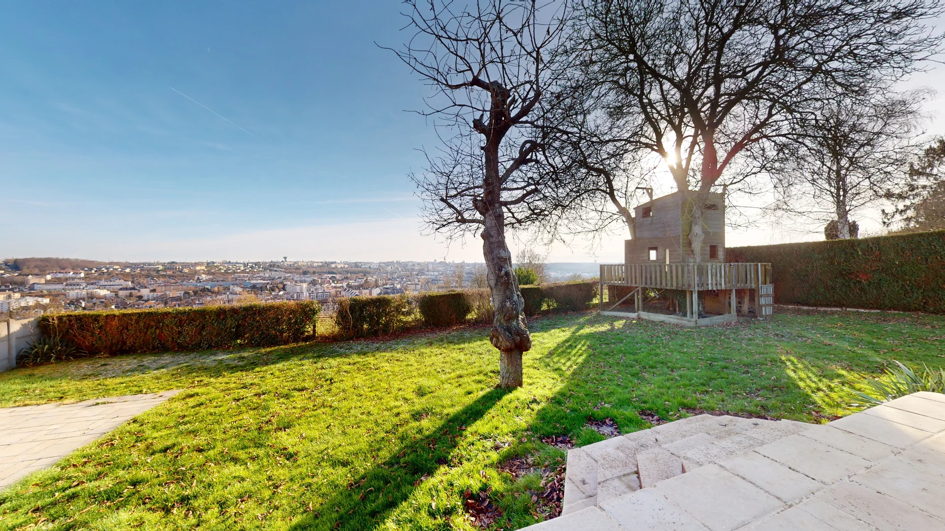 Idéal pour profiter des beaux jours, ou simplement prendre l'air, ce bien possède un beau jardin clos et arboré de 969m² avec 2 terrasses et une vue panoramique.