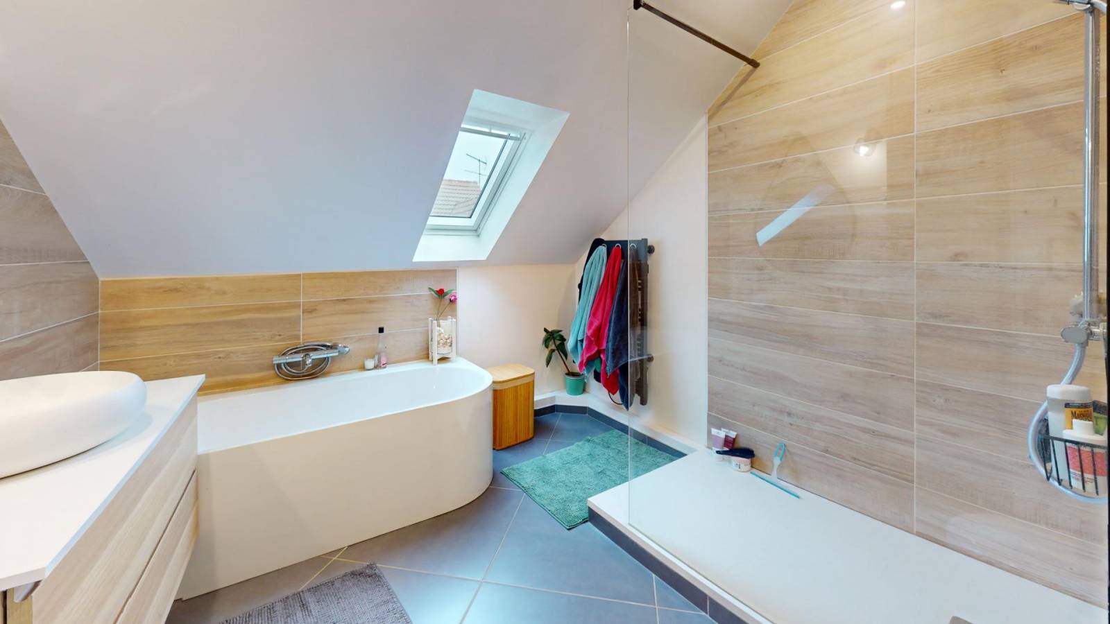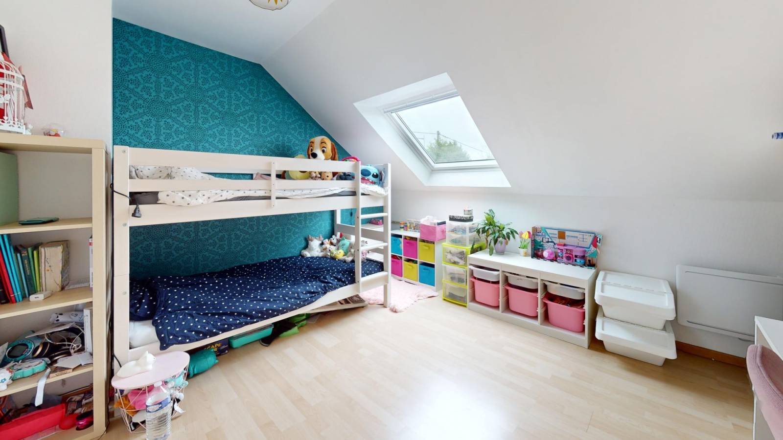 A l'étage, un palier desservant les trois chambres rénovées et la salle de bains avec sa douche italienne et son WC.