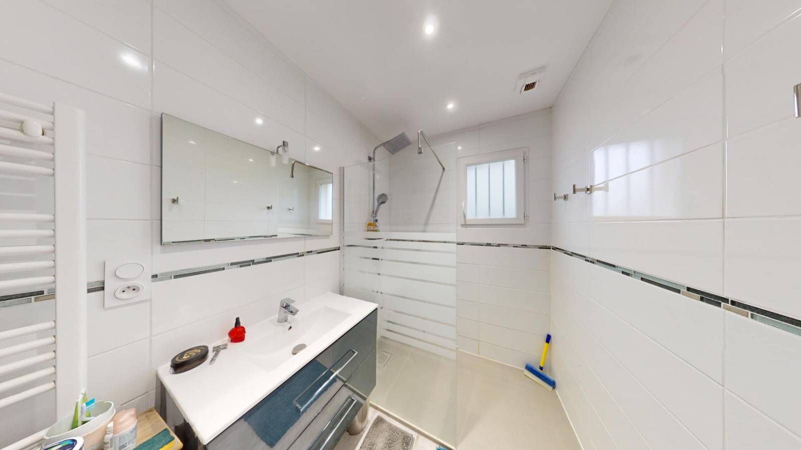 Cette maison de 91.30m² vous offre, un salon séjour, une cuisine ouverte aménagée et équipée, une salle d'eau, une chambre, un bureau et un WC indépendant.