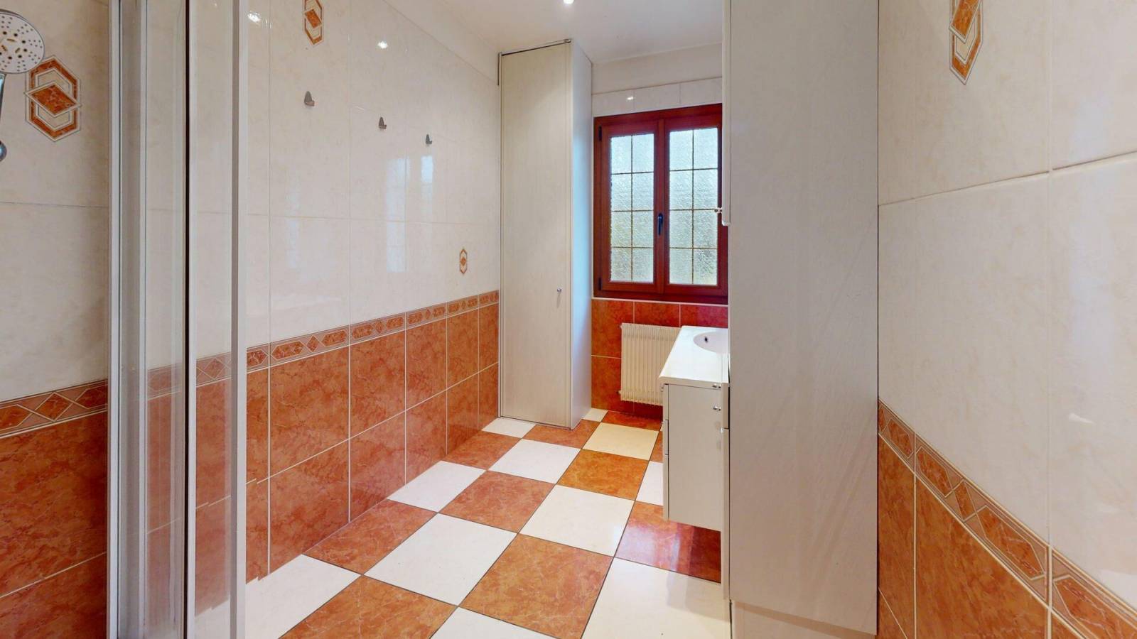 La maison se compose de 4 chambres, dont 1 chambre au rez-de-chaussée avec une salle de bains. Trois chambres à l'étage avec une salle d'eau et un WC, pour un confort optimal à chaque niveau. Les fenêtres PVC double vitrage assurent une bonne isolation thermique.