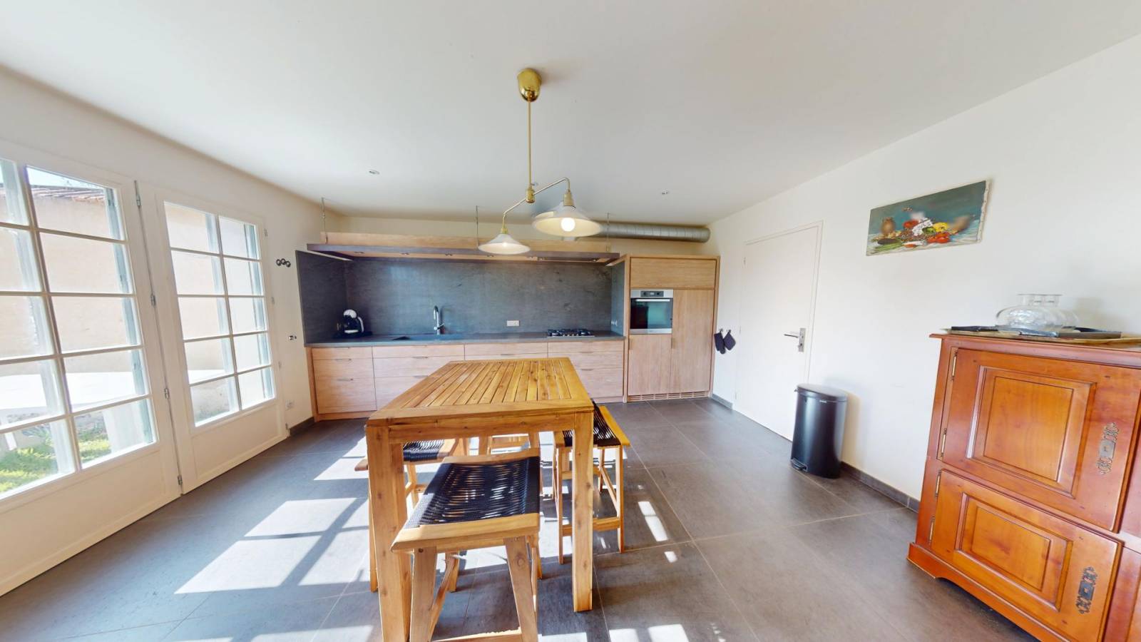 Vous disposerez au rez-de-chaussée d'une entrée donnant sur un grand un salon/séjour lumineux, une cuisine aménagée et équipée très spacieuse et fonctionnelle avec un cellier, une chambre ainsi que une salle d'eau avec WC.