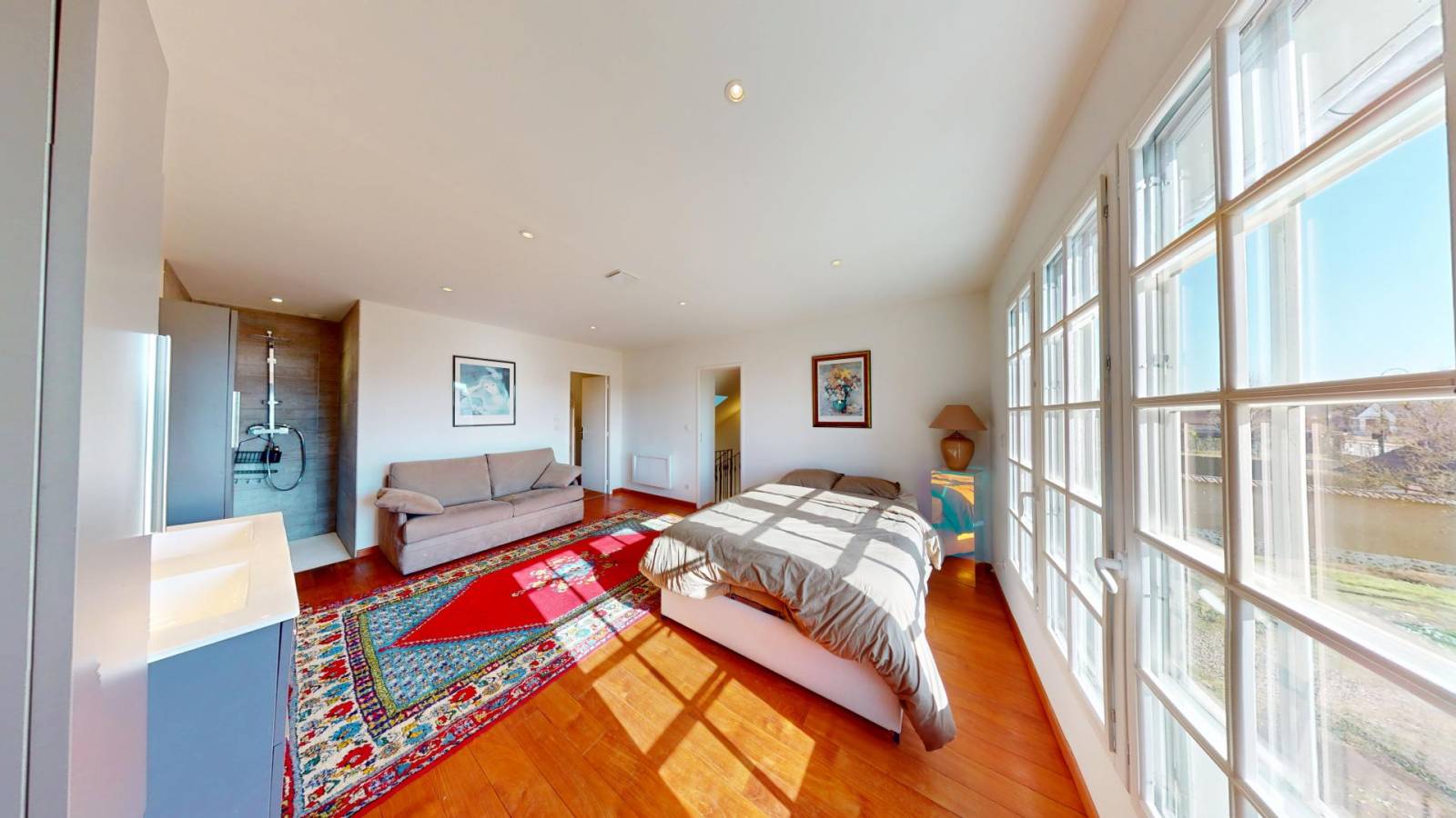 A l'étage vous trouverez un palier, une suite parentale avec salle d'eau et dressing, un grenier et un WC indépendant.