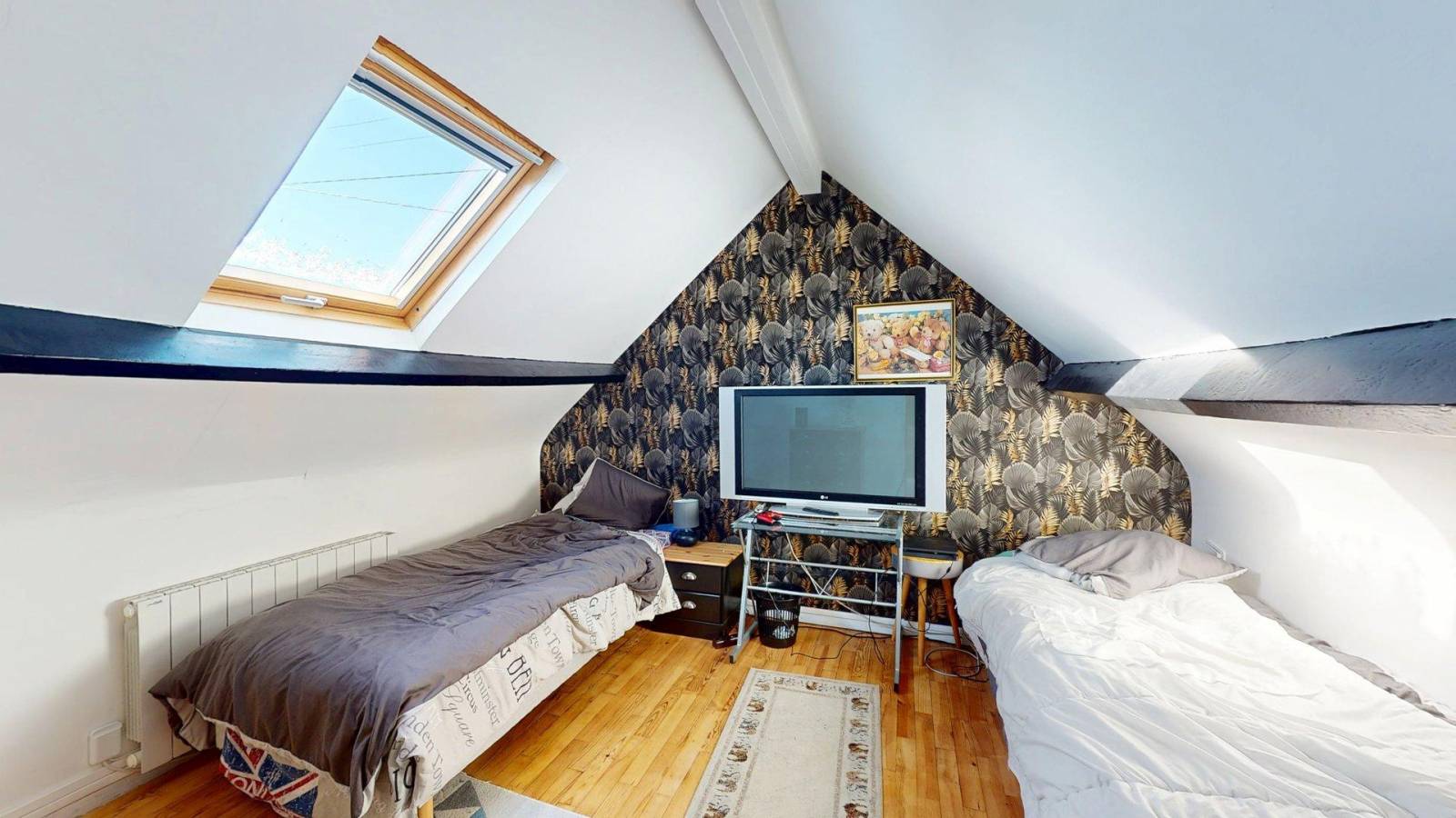 L’étage dessert deux chambres dont une traversante et une salle d’eau ainsi qu’un WC, permettant une organisation idéale pour une famille. Organisation de l'étage pouvant être modifié pour créer deux chambres individuel en gardant une salle d'eau et un Wc.