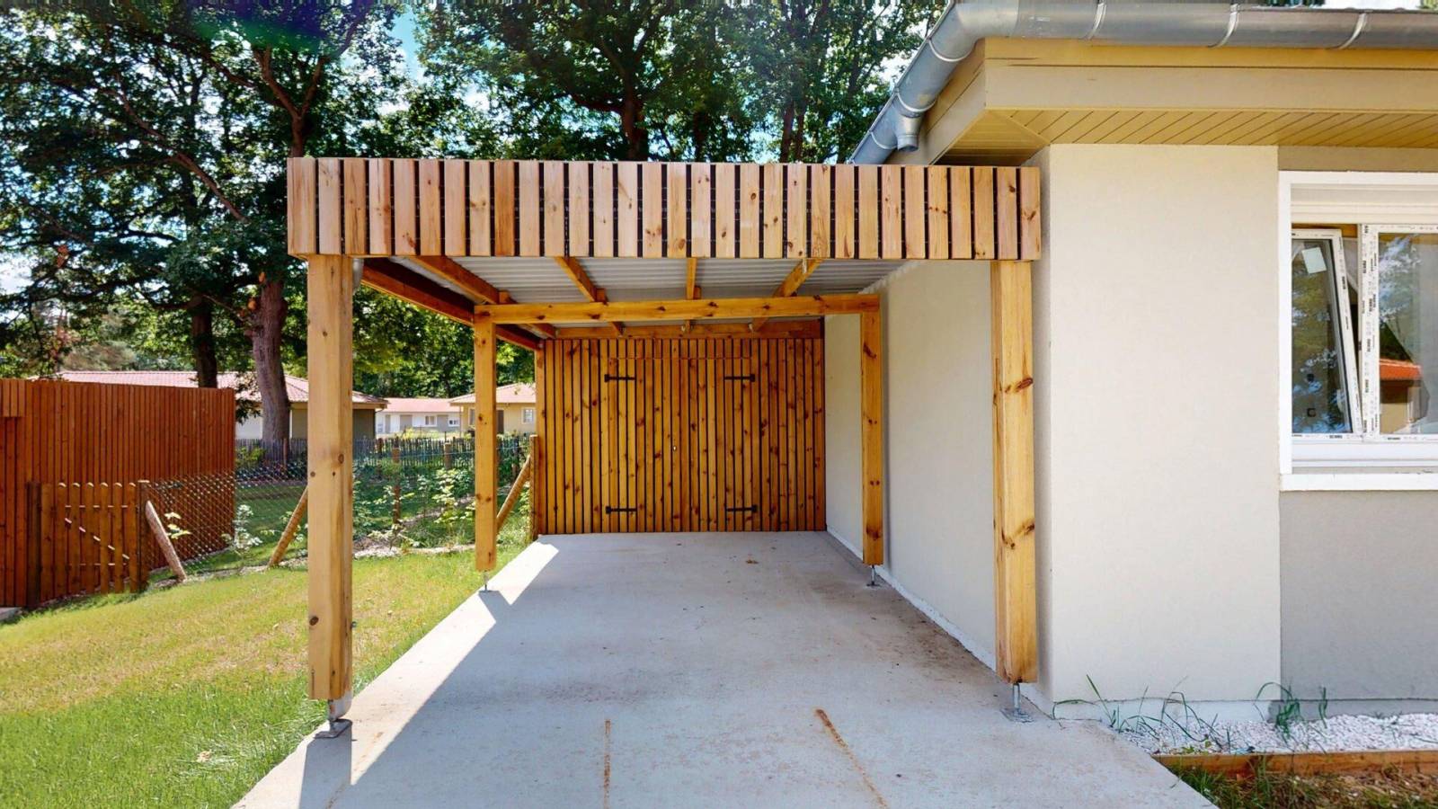 L'extérieur offre un cadre de vie verdoyant et agréable, avec deux espaces extérieurs distincts : une parcelle ouverte de 130m² et une parcelle privative de jardin de 904m². Une terrasse, un carport et un abri de jardin viennent parfaire l'ensemble.